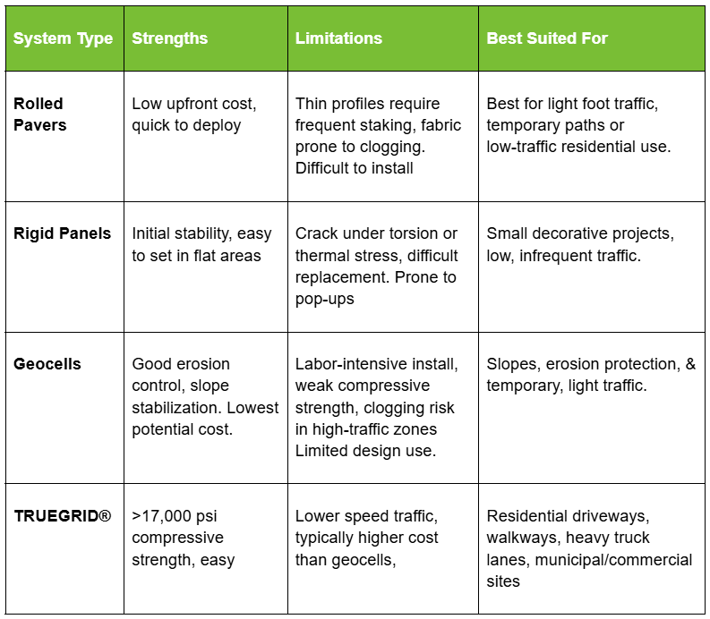 Not all plastic permeable pavers are equal, and knowing the weaknesses of common systems helps in selection.