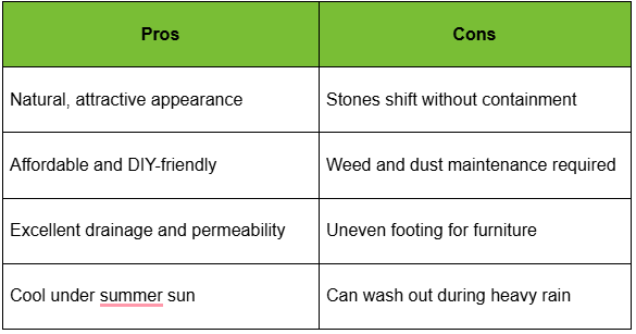 Every site brings unique conditions, but weighing pea gravel patio pros and cons clarifies where it excels.